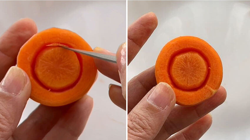 19. Smooth the outside of the carrot slice.