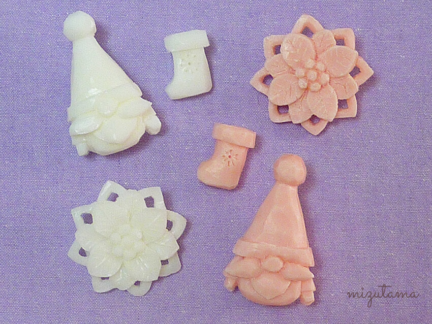 - Wykonałam małego skrzata, poinsecję i malutką skarpetę św. Mikołaja z mydła