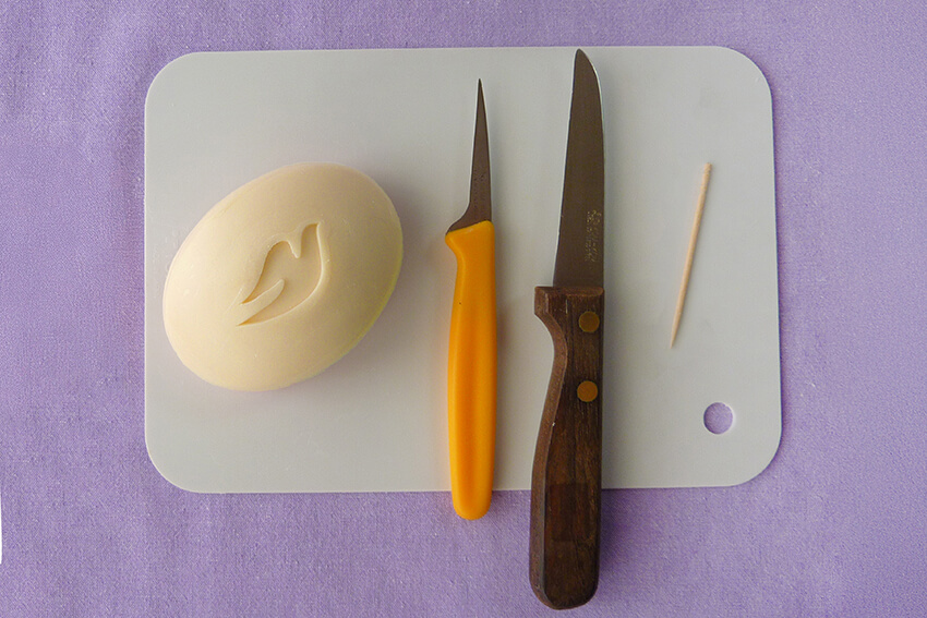 Cienko odetnij górną stronę mydła, aby utworzyć płaską powierzchnię.