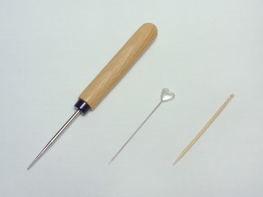 Awl, toothpick, or a pin etc. Pointed tools are used for drawing outlines on the soap, make small holes in the soap or make a hole in the bottom of a soap flower.