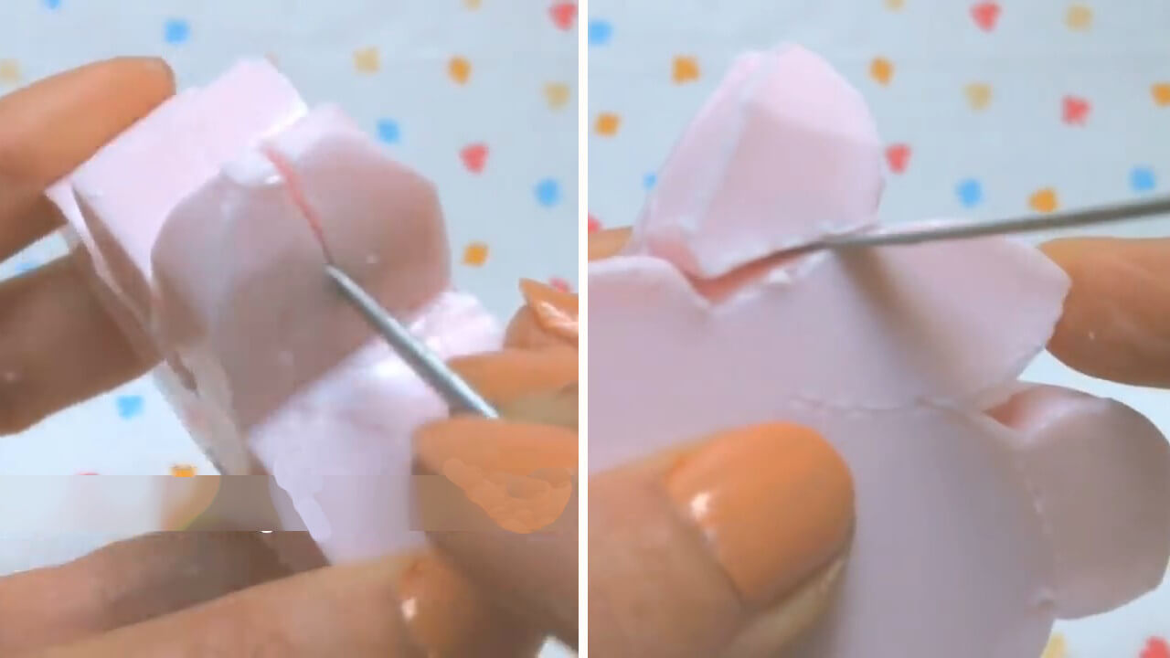 2. Slice off the top and the bottom of your soap with a carving knife. Soap should have 20 mm of thickness.