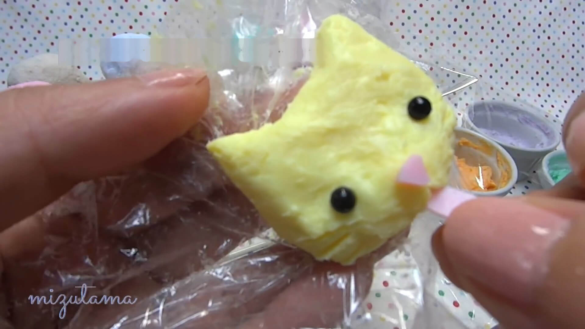 6.1 Make an ice cream cat with the second half of soap paste, leaving a bit of soap paste to make cat paws.