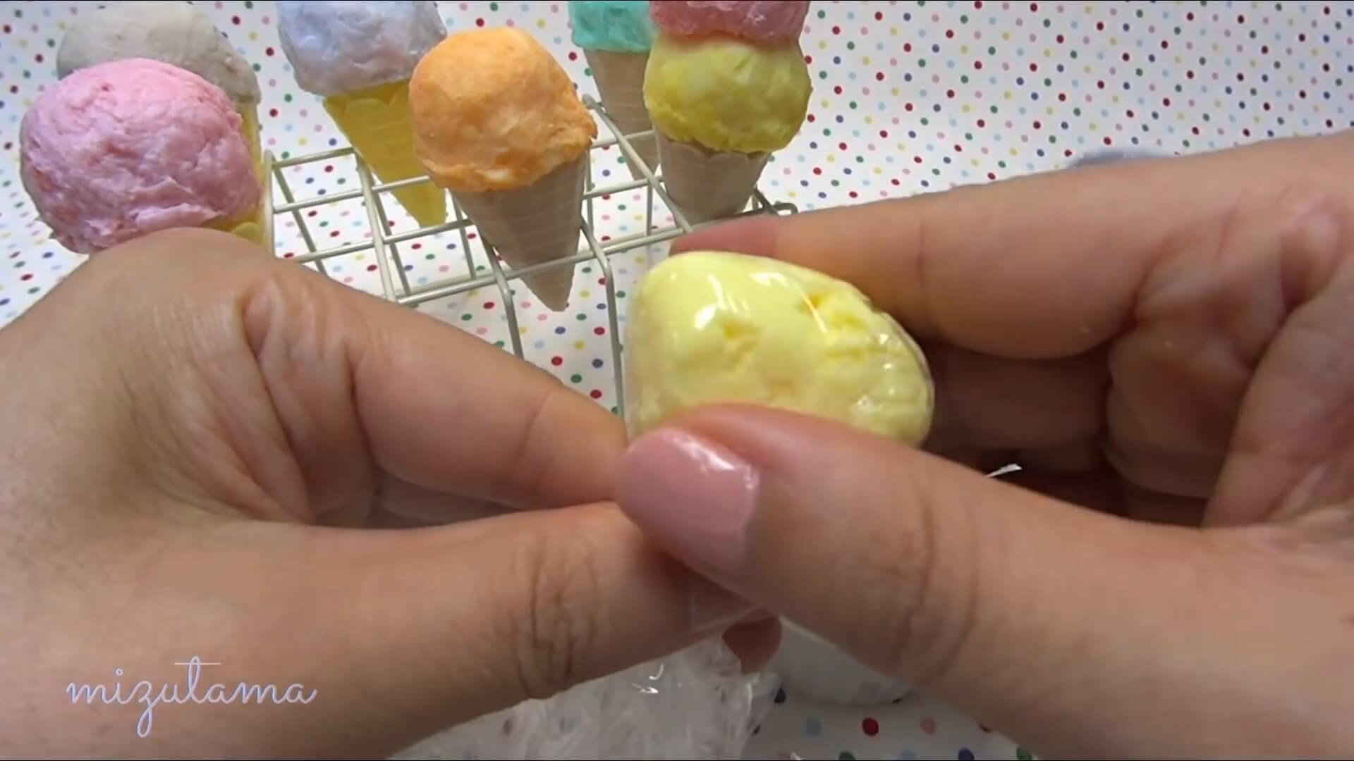 7.1 Make scoops of soap ice cream. Repeat steps 5.3-5.7 for each scoop.