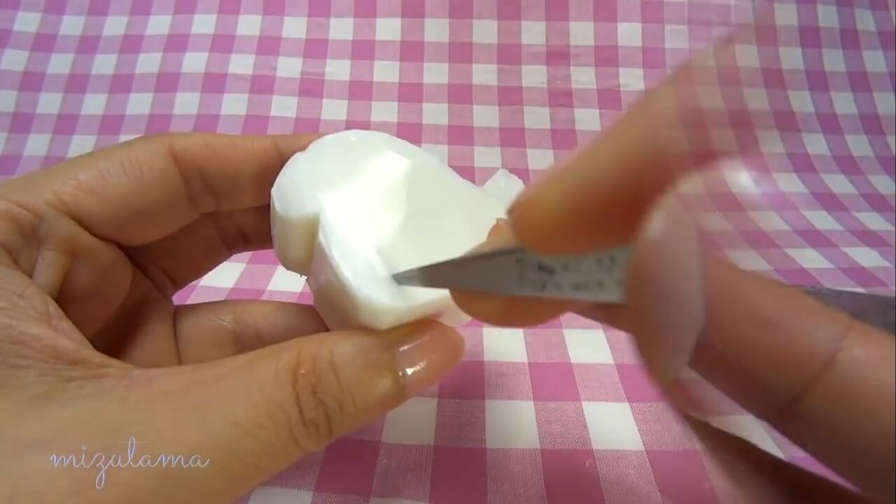 8. Remove excess soap with the carving knife. Cut the soap perpendicularly to the top of the soap.