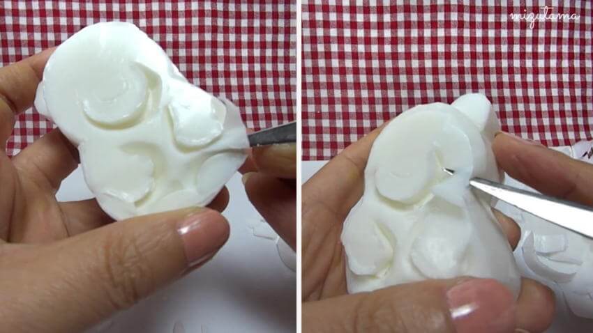 8. Cut off the soap around the muzzle and legs, and trim the edge of the body and the face.