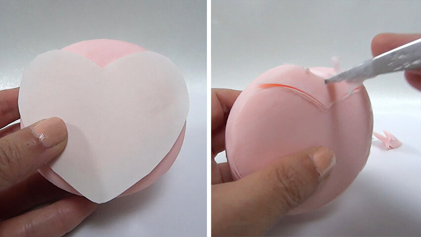 4. Holding the carving knife horizontally, make a shallow dent in each part.