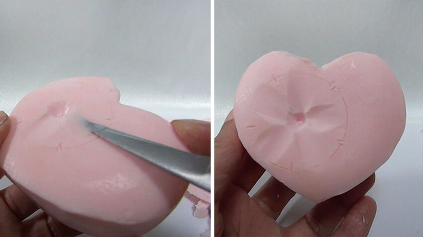 9. Evenly cut off the soap between the petals. Then, cut five small round petals between the petals.