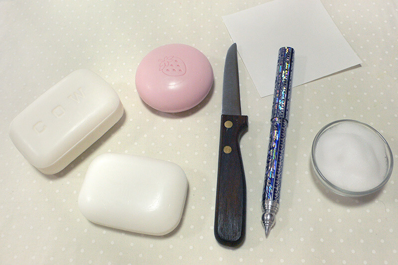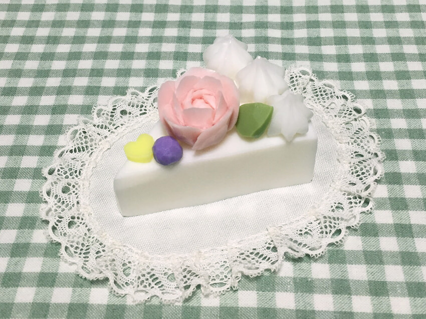 1.6 Place the piece of paper and trace the shape of piece of cake onto the soap.