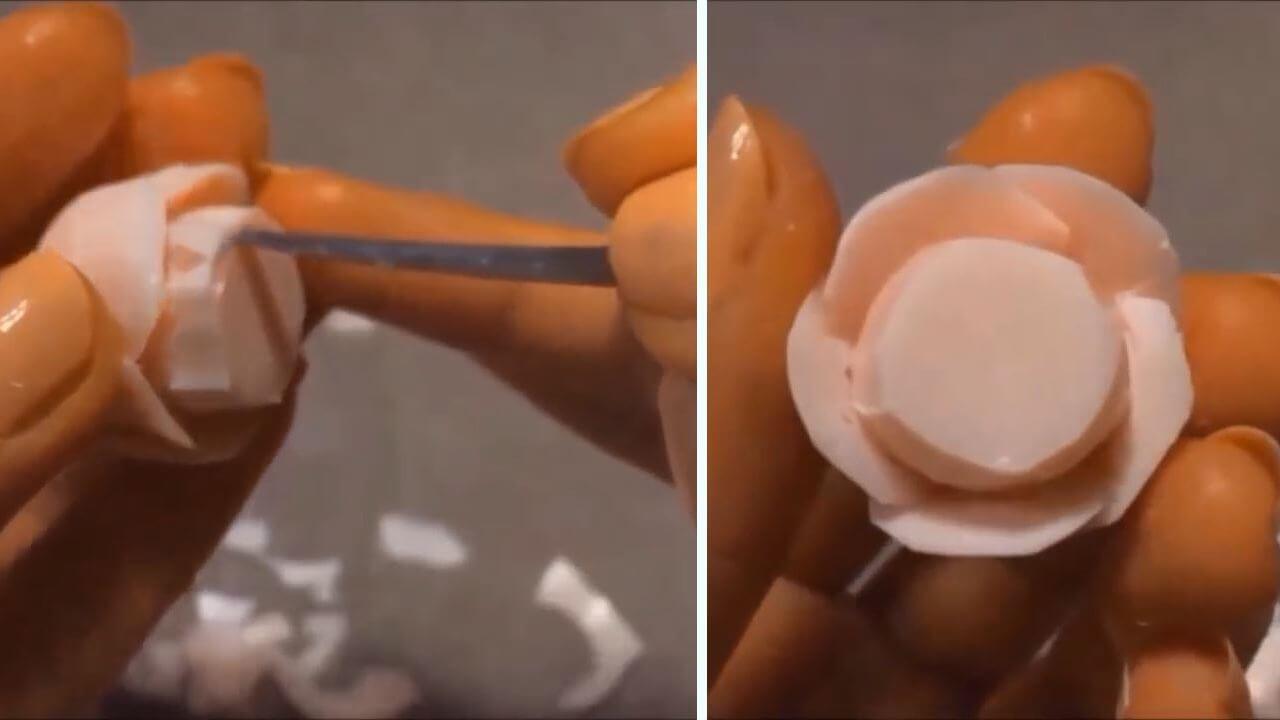 3.6 Carve the last petal and remove soap under it. It should be overlapped by the first and the fourth petal.